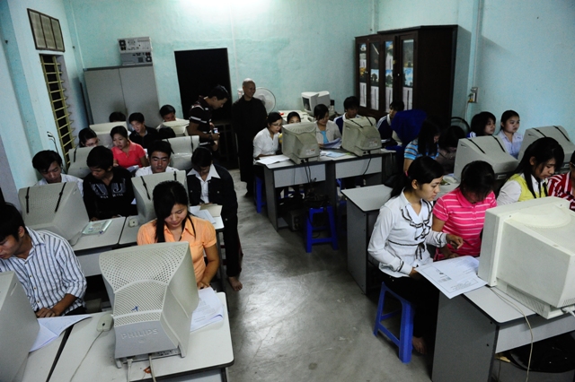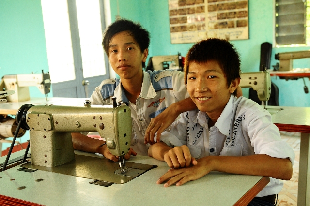 In der Nähe der Stadt Quang Tri fuhren wir zum Berufschulprojekt Phung Xuan, das1996 unter Mithilfe unseres Ehrw. Abtes Thay Thich Thien Son gegründet wurde. Auch hier wird es Jugendlichen mit Behinderung und aus sehr armen Familien ermöglicht, eine Grundausbildung zur Näherin oder zum Näher zu machen. Damit ist die Chance größer, anschließend einen Arbeitsplatz in Industrieschneidereien zu bekommen. Dank regelmäßiger Spenden gibt es mittlerweile auch EDV-Unterricht.