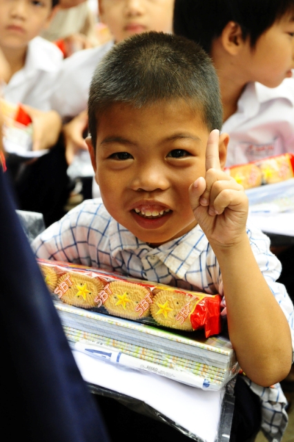 Eine weiteres Projekt ist eine Grundschule im Süden von Hue. Sie ist aus Spendengeldern entstanden und wird seit ihrer Gründung mit Schuluniformen, Heften und diversen Einrichtungsgegenständen unterstüzt. Gerade in den ärmeren Gebieten ist die Investition in Schulbildung sehr wichtig, um die Zukunft der Kinder in der Region zu sichern. Als wir eintrafen herrschte auf dem Schulhof wildes Gewusel bis sich alle Kinder in Reihen aufgestellt hatten, um die neuen Uniformen und Schulhefte voller Stolz entgegen zu nehmen. Die Stimmung war übewältigend! Wenn man die strahlenden Gesichter und die Freude dieser 460 Kinder gesehen hat, wird einem ganz warm ums Herz. Diese Begeisterung sprang auf uns über. Ein großer Dank kam auch von den Lehrer/innen und dem Direktor der Schule, die weiterhin auf unsere Unterstüzung hoffen.