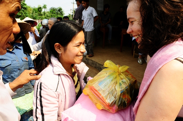 Die Spenden wurden an Ni Su Nhu Minh die Ehrw. Äbtissin der Pagode Tay Linh überreicht. Sie setzt sich sehr engagiert für die arme Bevölkerung ein und betreut seit vielen Jahren verschiedene Projekte in und um Hué, in Zentralvietnam. Wir alle waren von ihrer Warmherzigkeit und Güte überwältigt und schenken ihr unser volles Vertrauen. Sie gibt ihren ganzen Einsatz bei der individuellen Betreuung betroffener Familien. Besonders wichtig sind ihr auch die Projekte, die schon über viele Jahre laufen. Sie werden somit von der Entstehung bis heute kontinuierlich von der Ehrw. Äbtissin begleitet .