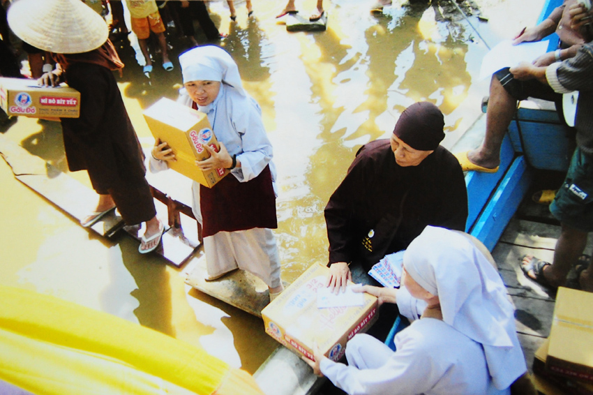 Um die Schäden, die der Taifun angerichtet hat zu beseitigen, und um die Menschen die dadurch Leid erfahren haben zu unterstützen, ist die ehrw. Ni Su Nhu Minh vor Ort rund um die Uhr im Einsatz um den Bedürftigen, und vor allem Kindern in der Not zu helfen.